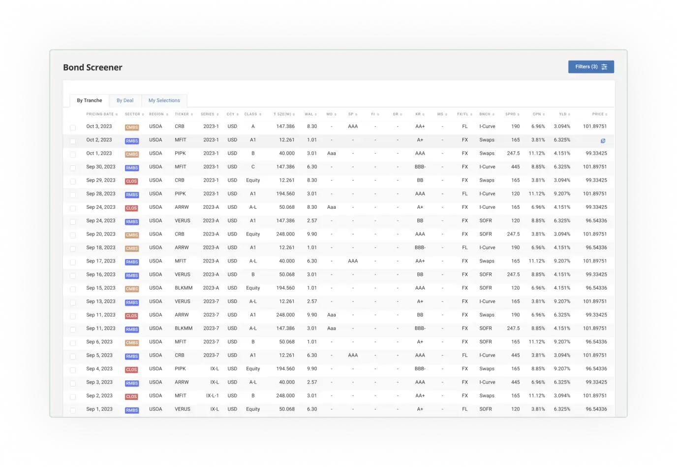 Effortlessly compare pricing details of bonds, including tranche-level information