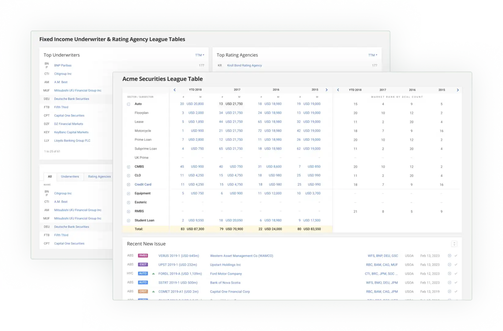 Underwriter & Rating Agency League Tables